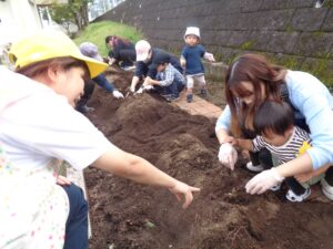 10月のわくわくらんどでは、さつまいもほりをしました。